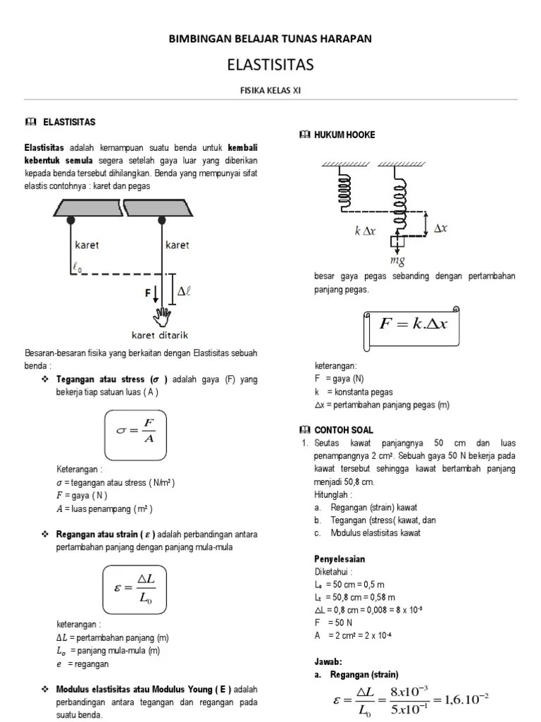 Rangkuman bab elastisitas zat padat dan pembahasan dan contoh soal disusun oleh : Pembahasan soal un fisika bab elastisitas dan hukum hooke. Ringkasan materi dan pembahasan soal un fisika tentang elastisitas dan hukum hooke dilengkapi. Pembahasan soal un fisika bab elastisitas dan hukum hooke. Soal no.1 (utbk 2019) seutas pita elastis memiliki . Soal fisikan sma kelas 11 tentang . Elastisitas dan hukum hooke tegangan (stress) Konsep elastisitas menjadi materi fisika sma kelas 11 pada kurikulum 2013. Di dalam ilmu fisika, elastisitas yaitu kecenderungan suatu bahan padat untuk kembali ke bentuk semula setelah . Elastisitas fisika dan contoh soal. Pemetaan sk kd matematika kelas xi ips semester 1. Untuk lebih mendalami materi elastisitas bahan, perhatikan contoh soal sifat elastisitas bahan berikut ini. Rumus elastisitas fisika dan contoh soal elastisitas fisika.