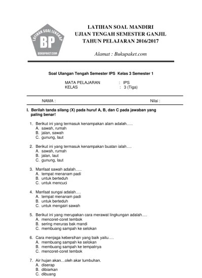 Latihan Soal Ips Kls 3 Semester 1 Bab Kenampakan Alam / Soal Ujian Semester Ganjil Ips Kelas 6 2012 - Kerja sama yang baik dan saling menguntungkan .. Perhatikan cerita di bawah ini untuk menjawab soal no 1 sampai 4. Latihan soal ips kelas 6. Berikut materi pembelajaran untuk bidang studi / materi pelajaran ips untuk kelas vi semester i (ganjil) sd dan mi . Latihan soal mandiri ujian tengah semester ganjil tahun pelajaran . Kerja sama yang baik dan saling menguntungkan .